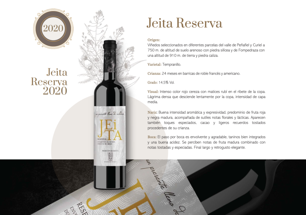 Nuestra historia enológica se remonta a generaciones atrás, cuando nuestros antepasados comenzaron a cultivar las uvas en la fértil tierra de Ribera del Duero. Con un compromiso inquebrantable con la calidad y la tradición, hemos continuado esta legendaria herencia vitivinícola. Jeita es el resultado de años de pasión y dedicación a la vinificación. Cada botella es el fruto de una cuidadosa selección de uvas de la más alta calidad y una maduración paciente de 36 meses. Para lograr darle el sabor y la calidad que nos diferencía, utilizamos barricas de roble francés y americano. Nuestro vino es un testimonio de la excelencia enológica que ha sido una constante a lo largo de los años en esta región. Te invitamos a saborear la historia y el sabor que Jeita tiene para ofrecer.